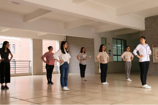 经过多次基础动作学习,大家的动作从生疏开始慢慢趋于熟练,越来越整齐划一。老师们开始流汗,却依旧认真的学习着每一个拍节的动作。各位老师们都融入其中,明快奔放的动作挥洒出动人的风采,展现了力与美的结合。